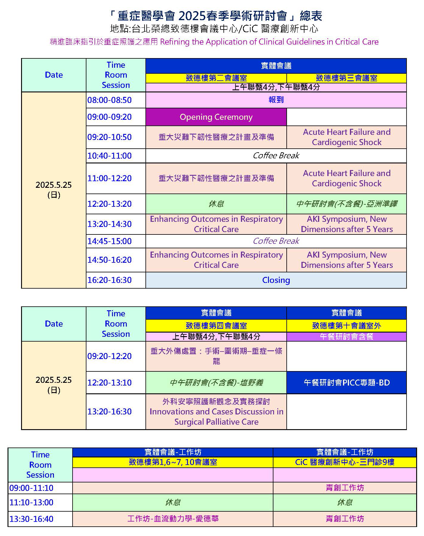 2025 年將於台北榮民總醫院致德樓會議中心舉辦,北區熱門場地,會員熟悉且多元,有利於 貴公司產品推廣及工作坊實作。期待與急重症醫療界好夥伴,攜手合作持續精進,戮力開創急重症醫療研究新頁。